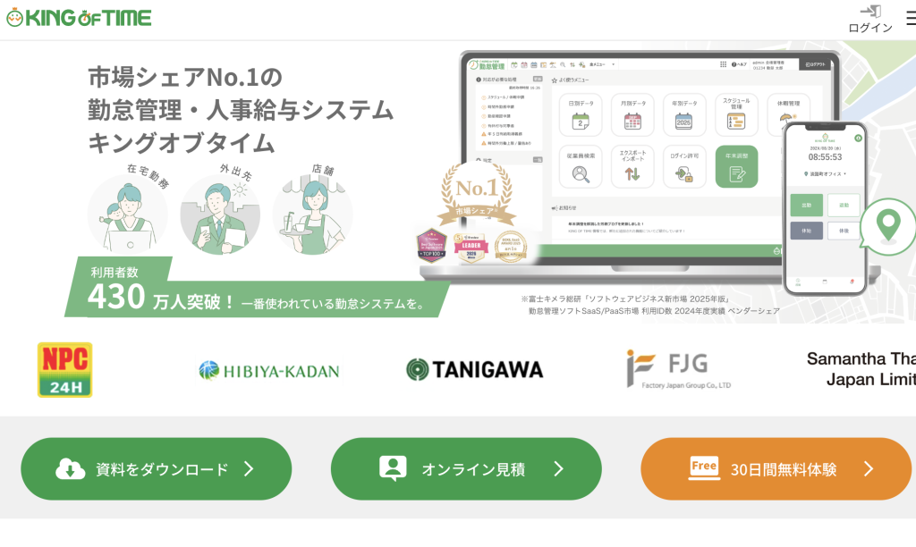 KING OF TIMEは、勤怠データの収集と集計の精度に定評がある勤怠管理システムです。